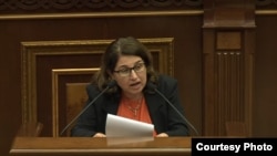 Նիկոլ Փաշինյանն արձագանքեց. - «Երեք ուսումնական ձեռնարկների հեղինակ գիտաշխատող, դոցենք, այսինքն, դասախոս, իր ասելով, ազգային, ընտանեկան արժեքների համար պայքարի դիրքերից հանդես եկող կին, երեք զավակի մայր Արմենուհի Կյուրեղյանը գալիս է այս ամբիոն ասում է՝ մեր բակում ոչ միայ ն ասում են, այլև անում են, ի՞նչ»: