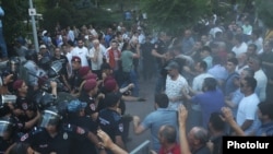 Ցուցարարները պնդում են, թե իրենց շարքերում սադրիչներ կան, ովքեր «շշեր են նետում իրավապահների ուղղությամբ»։